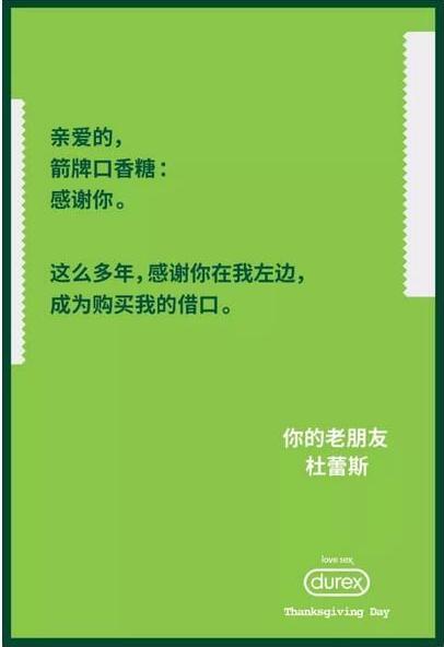 来看看杜蕾斯感恩套路(我们选取了部分海报):