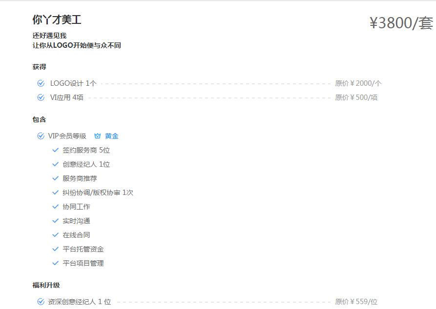 第一个套餐,就是“你丫的才是美工”明码标价3800元一套,主要服务的是logo设计,具体服务如下: